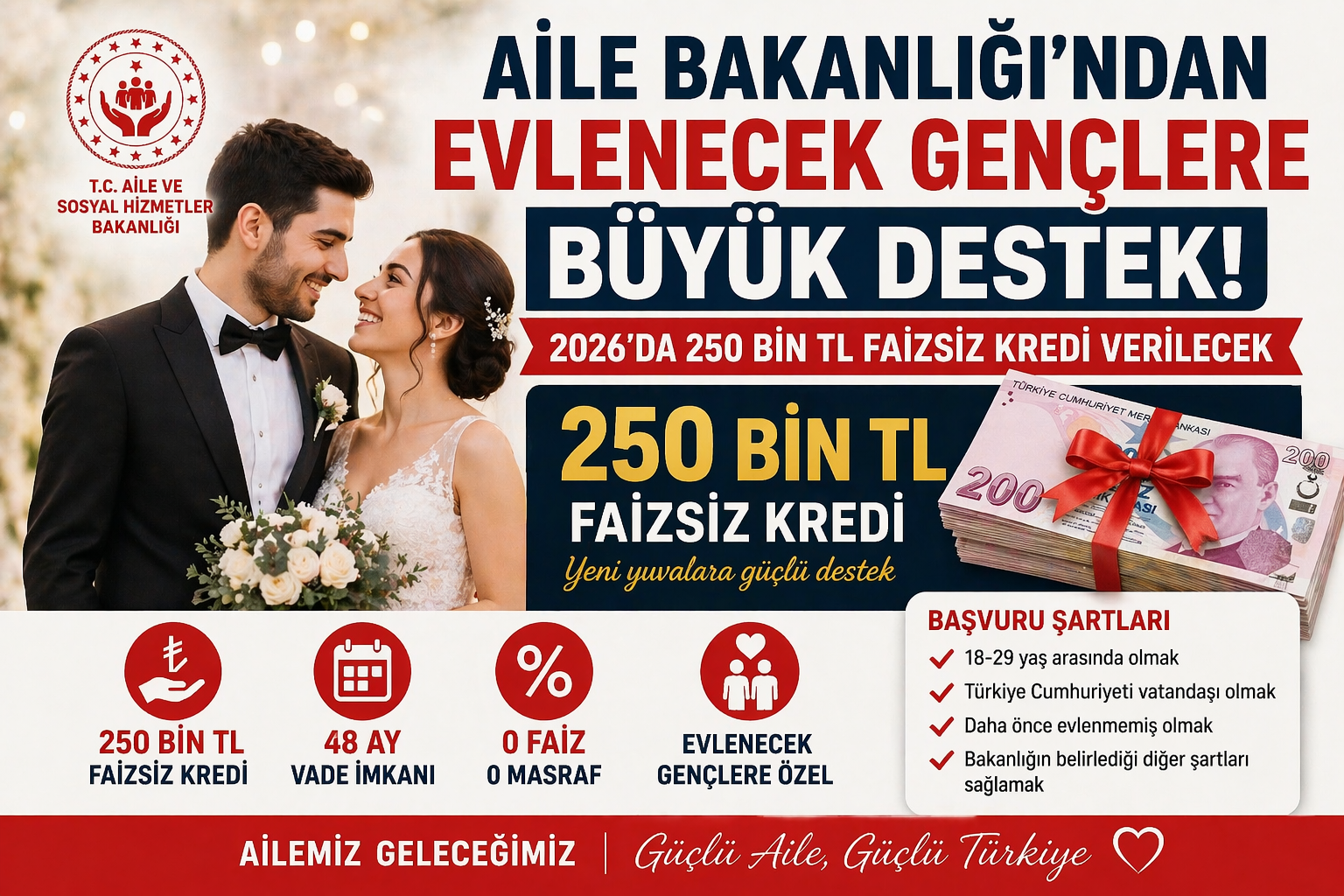 💍 Aile Bakanlığı’ndan Evlenecek Gençlere Büyük Destek! 2026’da 250 Bin TL Faizsiz Kredi Verilecek